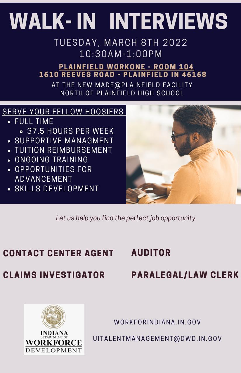WorkOne offices are open serving customers in person by appointment and virtually. WorkINdiana is the first step to building your future. 700 E Walnut St.